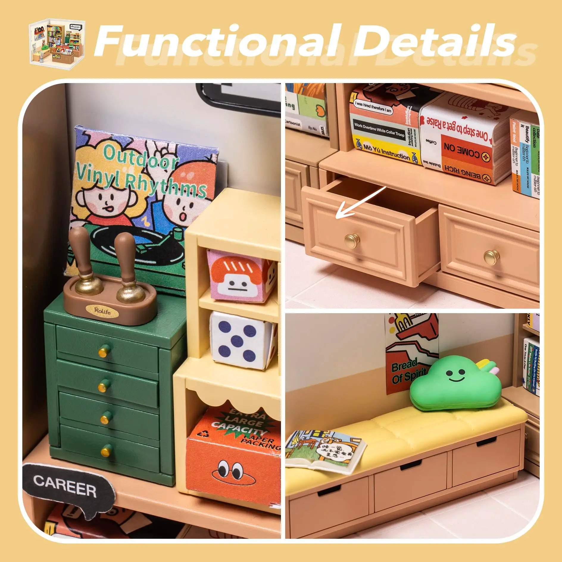 Robotime Rolife Super Creator Series miniature kits offer creative multi-scene DIY models designed as part of a collectible modular collection. Each kit provides an enjoyable hands-on building experience with detailed miniature components that create vibrant room and shop-style displays once assembled. The compact designs are ideal for desk décor, shelf display, or collecting multiple scenes from the series. Perfect for hobbyists and DIY enthusiasts who enjoy creative miniature building projects.